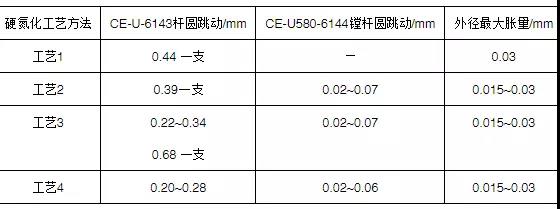 表2 不同硬氮化工艺的镗杆变形情况