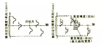 图1(左)单项5次测量时的重复精度及平均定位偏差