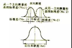 图1中的正态曲线是指从单方向接近目标点的曲线(称为单向),假如从反方向接近目标点(称为双向),将会出现条正态分布曲线(图2),两次不同方向时的结果偏差称反向误差。理论上它是由于系统的反向间隙所产生的。很明显,同一机床采用单向检测的数字结果要比双向检测时好看得多。