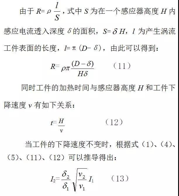 所以,如果通过试验了I1、v1、δ1的数据后,就可以根据式(13)大至估算出:在达到要求的硬化层深时,改变工件的下降速度所需要调整的电流大小。