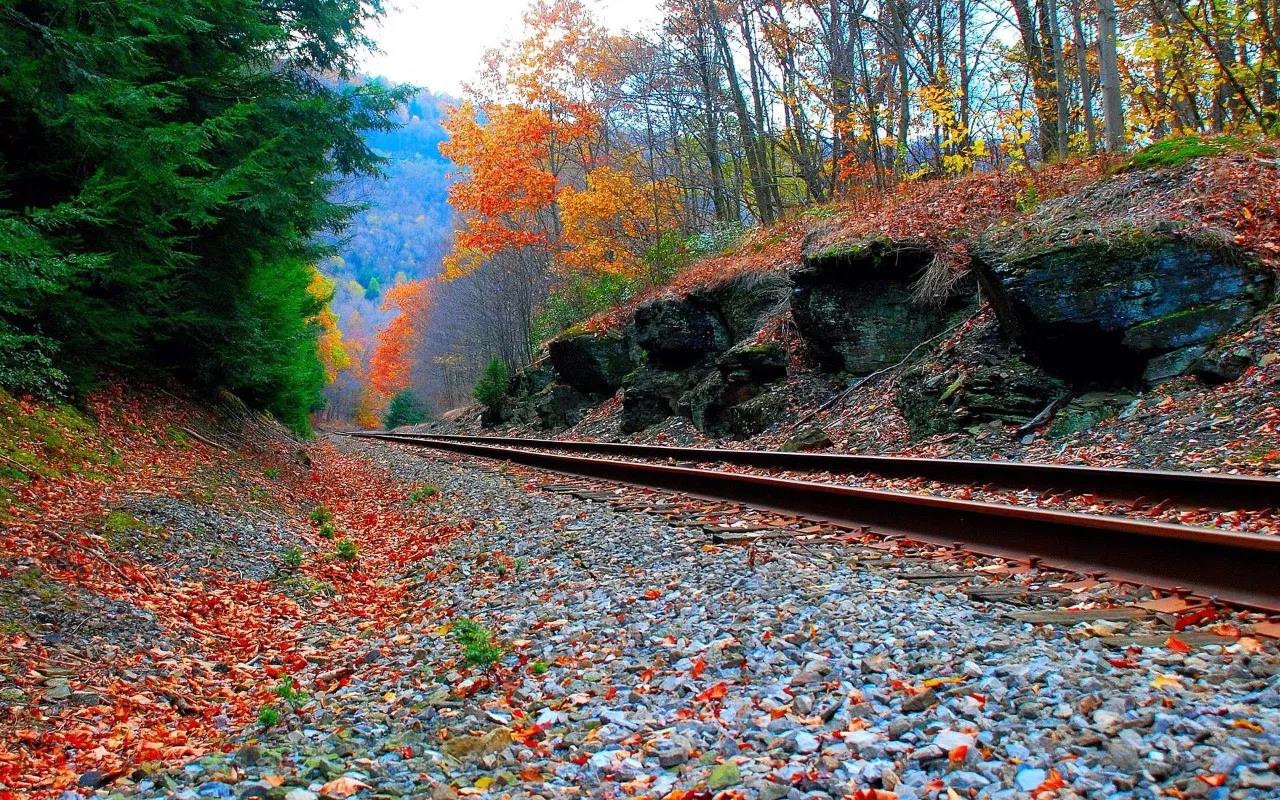 在火车行驶的铁轨下面,