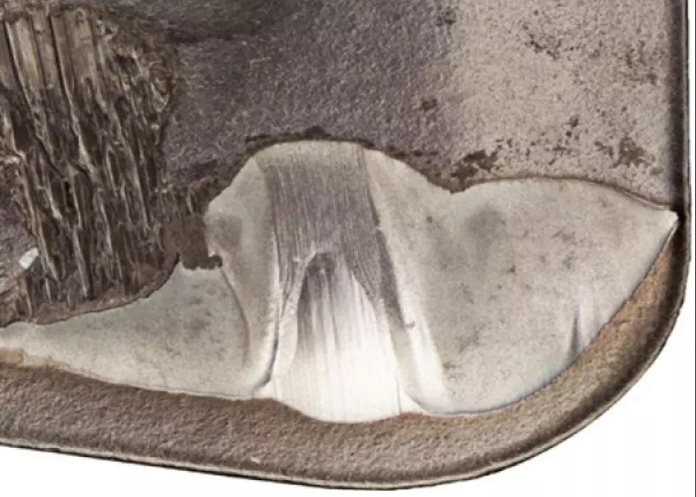 原因:积屑材料可能在切削刃顶部形成,从而将切削刃与材料分隔。这会增大切削力,从而导致整体失效或积屑瘤脱落,而且脱落时往往会将涂层甚至部分基体一并剥离。