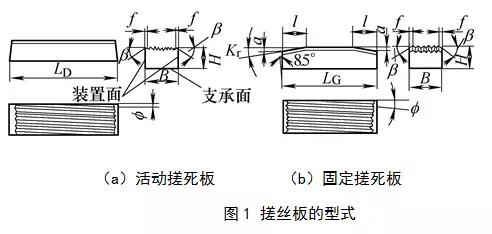 搓丝板的结构型式有活动搓丝板和固定搓丝板两种,如图1所示。