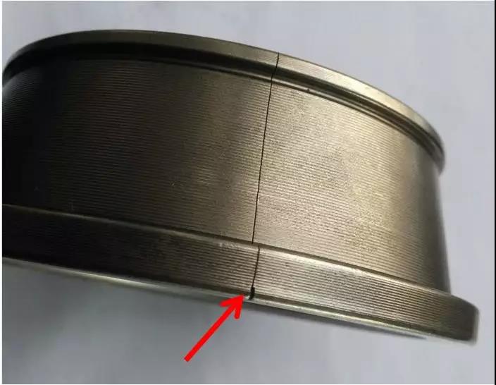 (3)根据样品断口特征,以及上述试验分析,推断样品是因大端面外倒角处在磨削双端面前,有明显的磕碰伤,由磕碰伤产生的微裂纹向套圈内部延伸成为裂纹源。在磨削双端面过程中,在较高磨削力作用下,裂纹进一步扩展,后导致套圈断裂。