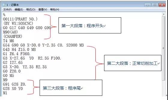 这个段落主要是正常加工,G指令是让刀具以何种方式运行。如 G01刀具直线方式运行,G02/G03圆弧方式运行……
