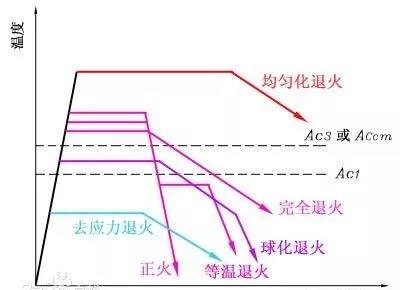 ⑦ 去应力退火。用以钢铁铸件和焊接件的内应力。对于钢铁制品加热后开始形成奥氏体的温度以下100~200℃,保温后在空气中冷却,即可内应力。